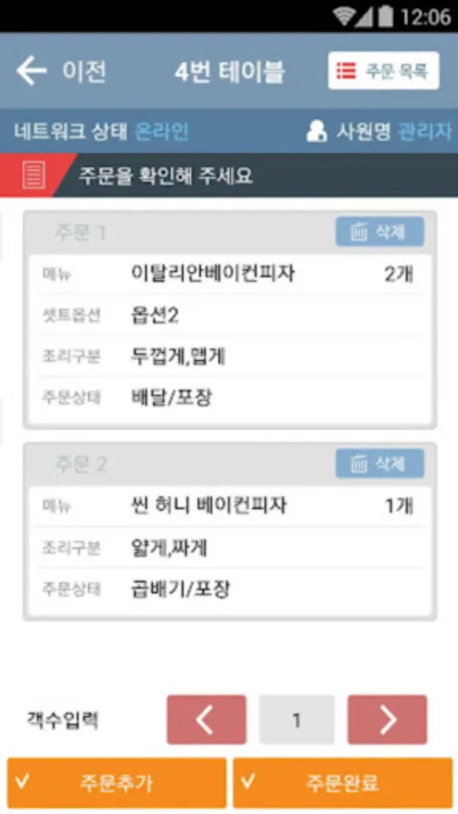 When the customer's order is received, the order is delivered to the main force and printed out to the kitchen printer.