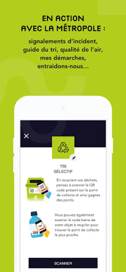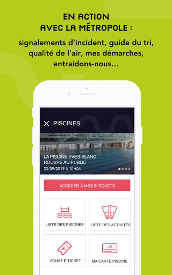• Acting with the Métropole: incident reporting, sorting guide, air quality, my steps, etc.