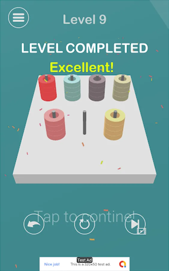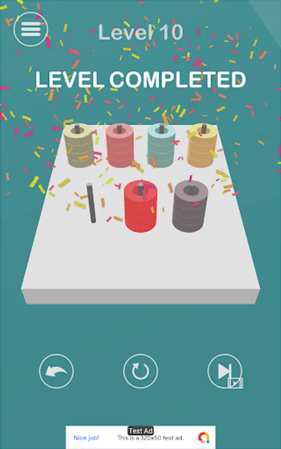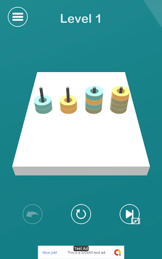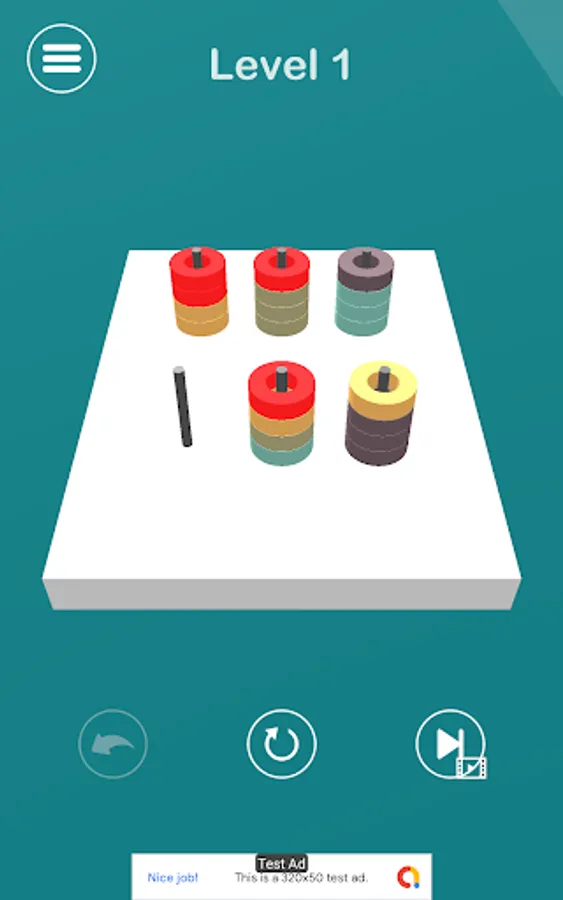 This is fun and addictive puzzle hoopla-like game of based on old Tower of Hanoi math puzzledesigned by Edouard Lucas from the nineteenth century. Try to sort the colored hoops on each pole until all hoops with the same color are on the same pole . A challenging yet relaxing game for the mind but to exercise your brain!