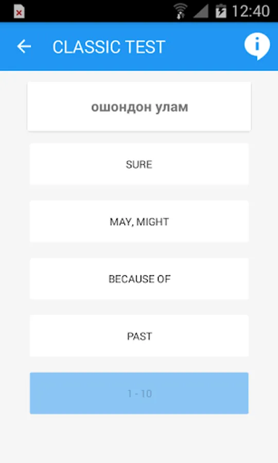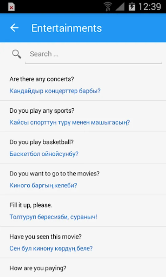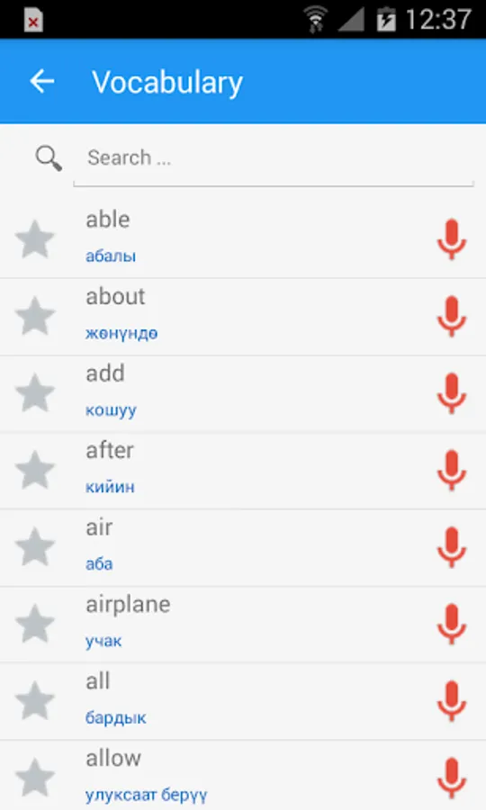 Application dedicated for learning Kyrgyz Language. Contains 3 language support - English, Russian, Support.