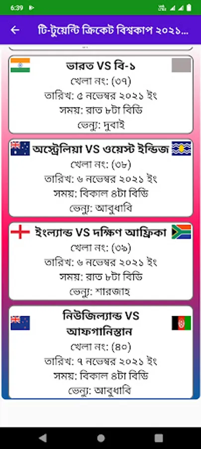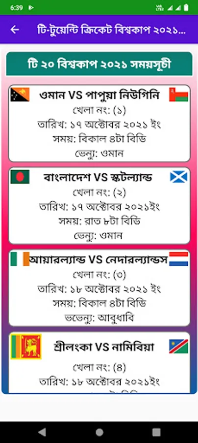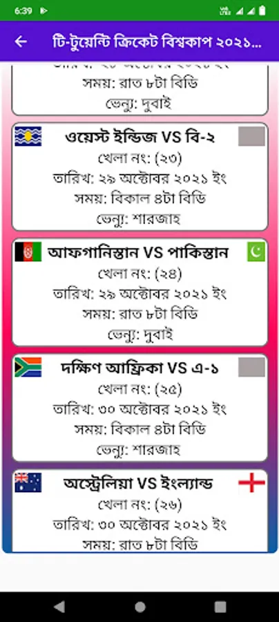 আমাদের অ্যাপটির মাধ্যমে খুব সহজেই বিশ্বকাপ ক্রিকেট ২০২৩ খেলার প্রতিটি ম্যাচ লাইভ স্কোর দেখতে পারবেন। এছাড়াও আমাদের অ্যাপটির মাধ্যমে বিশ্বকাপ ক্রিকেট খেলার সঠিক সময়সূচী পাবেন এবং খেলা চলাকালীন সময় পয়েন্ট টেবিল দেখতে পারবেন। এছাড়াও প্রতিটি দেশের খেলোয়ারের তালিকা সুন্দরভাবে সাজানো হয়েছে।