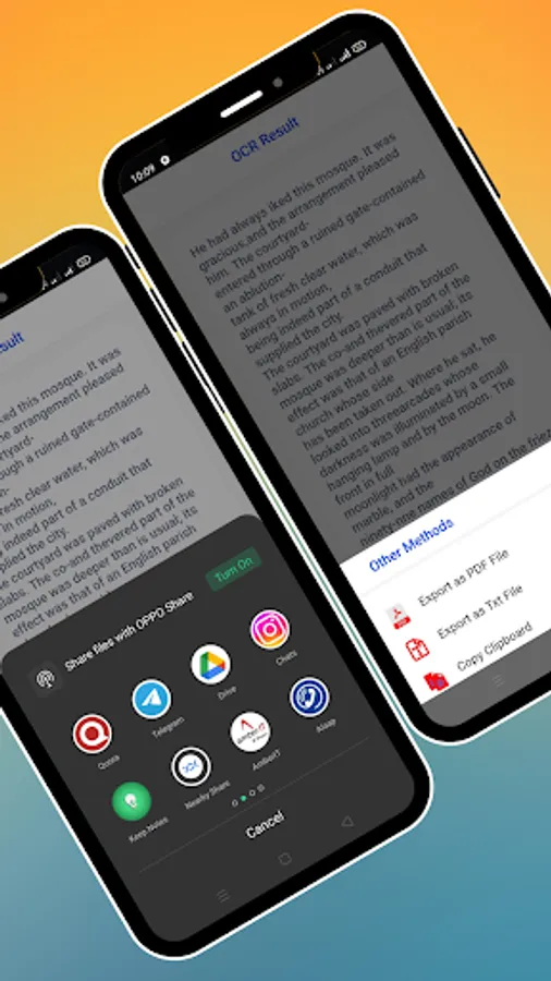 Now you can Convert your Gallery Image or Real Time Capture Image to Text or pdf. And share on social media, Email, or you can copy that text in the clipboard and later can be used in any other app or anywhere!