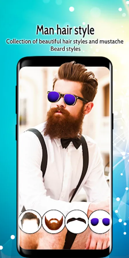 It’s pretty clear that Man Hairstyle will awaken your inner of manhood and will make you look in a good-looking ,keep in mind after you finish downloading this photo editor to go first of all to the gallery images and try to choose specific picture or capture a new one , subsequently apply a man hairstyle on your pictures and add some decorative accessories and be ready to blow your friends and followers mind , then share either your enhanced pictures through your preferable social networks or on your stories and feeds .