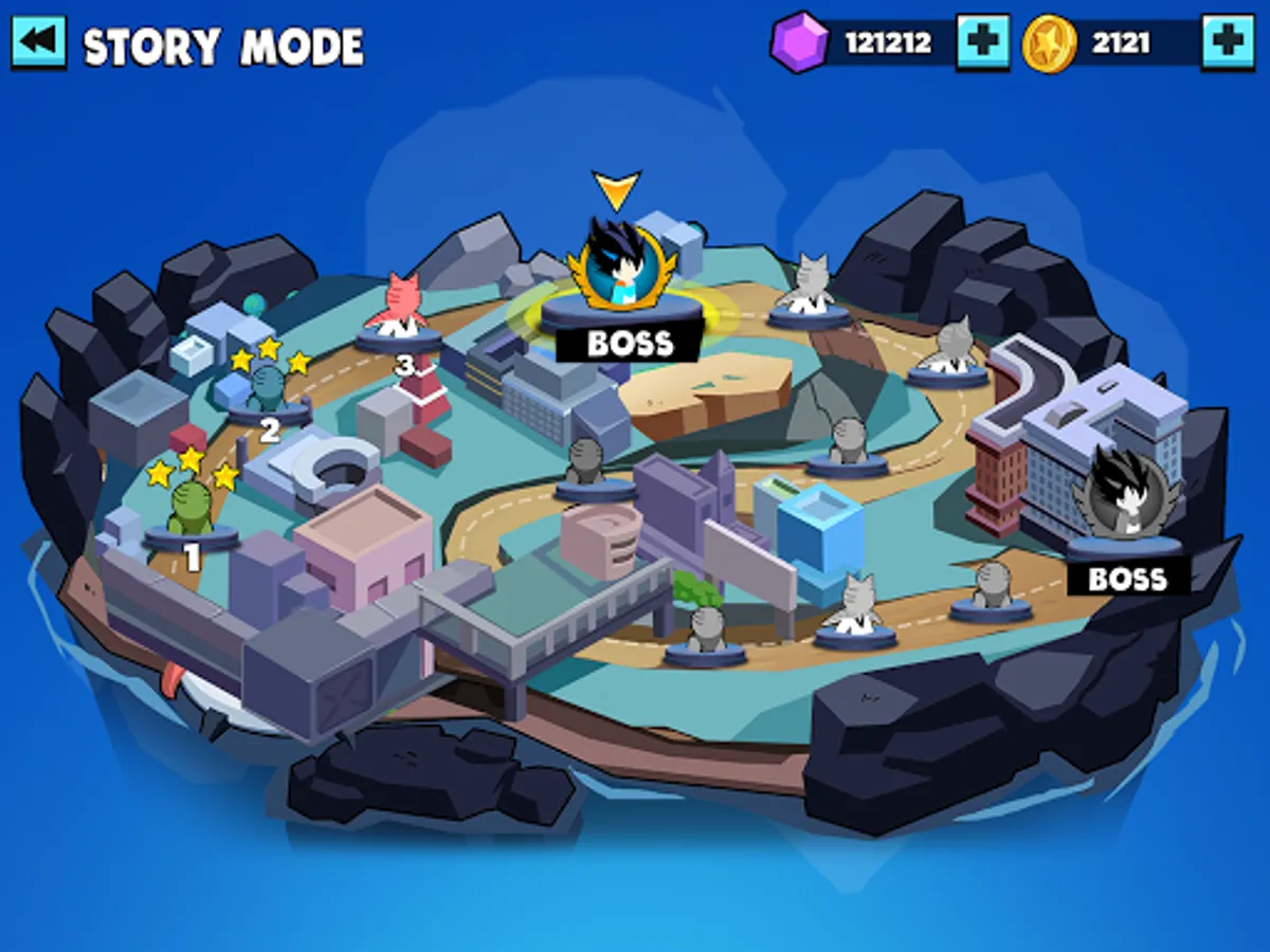 - Story mode: Go on a long journey to discover every single corner in the world, to search for the enemies, get into many fantastic playgrounds to defeat them and save people