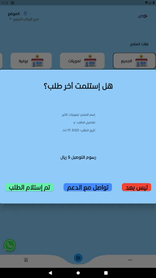You can also communicate with customer service via WhatsApp in case you encounter inquiries, difficulties, or problems using the application or receiving your requests.
