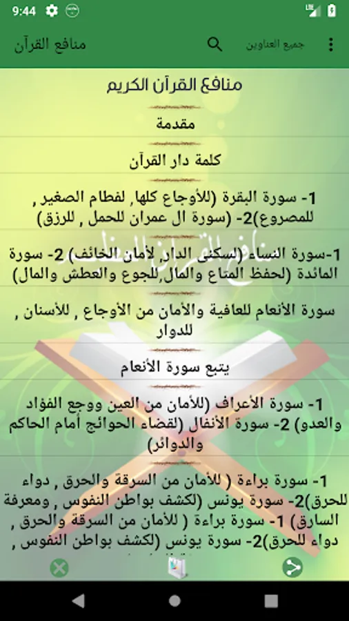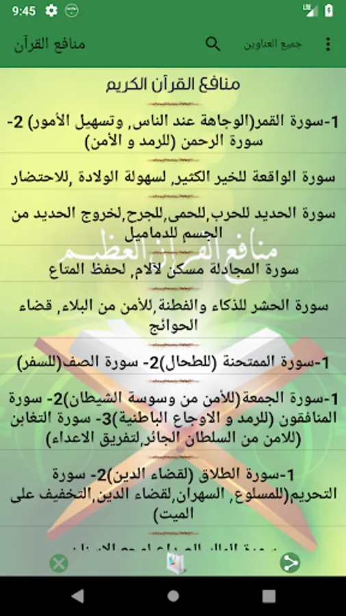 An application that contains the properties of the Great Qur’an and is called the benefits of the Great Qur’an...