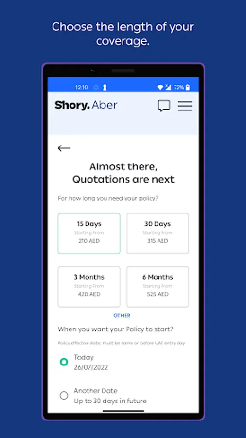 Purchasing short-term insurance with Shory Aber is easy and fast. Here’s how it works: