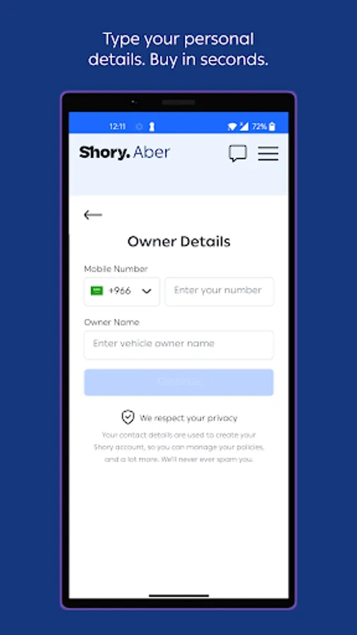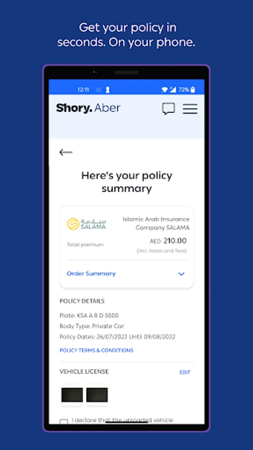 Shory Aber is the first online car insurance platform to issue policies before you arrive. Skip long waits and queues at the border by buying your policy in advance. With just a few taps, no paperwork needed. Easy.