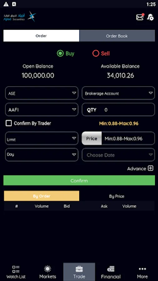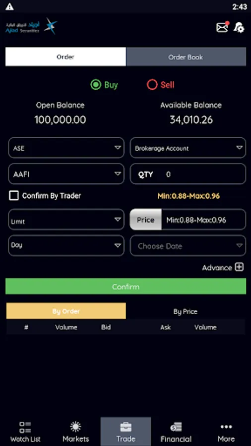 To access this application and begin trading online you will need a brokerage account with Ajiad Securities. To sign up, please call +96265622268 or visit our web site www.ajiadsecurities.com