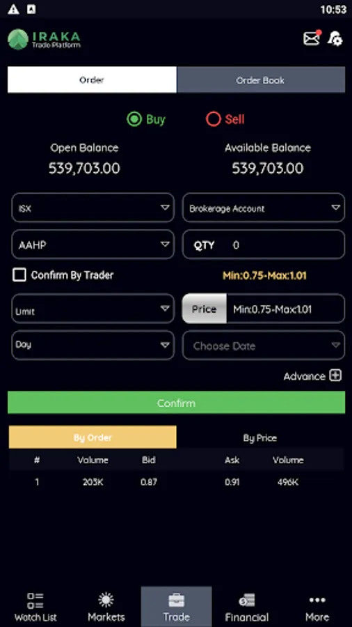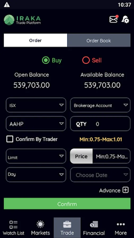 IRAKA Trade Platform (IKTP) will be streaming live market prices. And through the Karmal Brokerage website, the user can utilize additional trading tools such as chart analysis reports, news feeds, and account management functions.