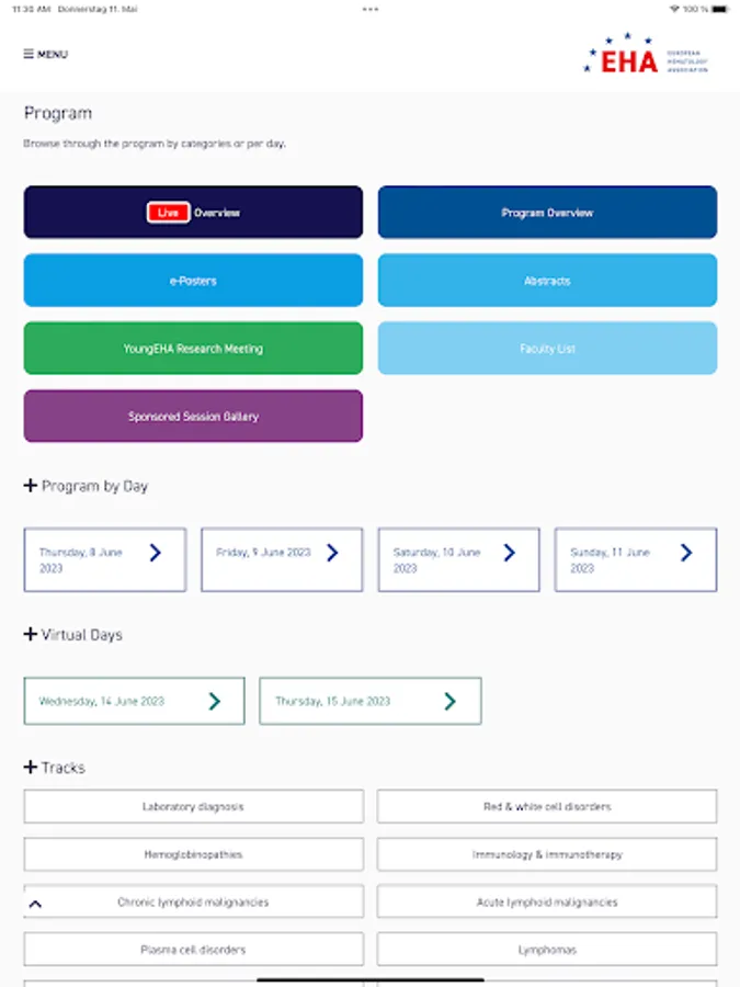 Welcome to the Congress Mobile App of the EHA2023 Hybrid Congress. The European Hematology Association promotes excellence in patient care, research, and education in hematology. EHA serves medical professionals, researchers, and scientists with an active interest in hematology and is proud to be the largest European-based organization connecting hematologists worldwide to support career development and research, harmonize hematology education, and advocate for hematologists and hematology.