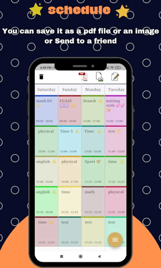 ▪ Save the schedule palanner as a pdf file. or an image jpg on your device
