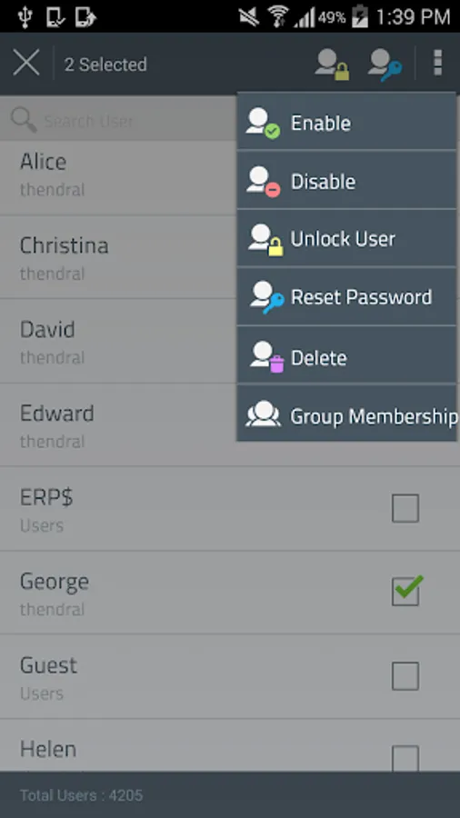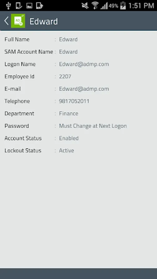 ADManager Plus’ Android App enables Active Directory administrators and help desk technicians to manage the user accounts in their network, right from their mobile devices. With the ability to execute critical user management tasks ‘on the move’, this app puts your administrators and technicians in firm control over all Active Directory user accounts, always!