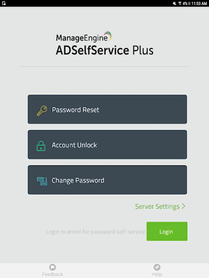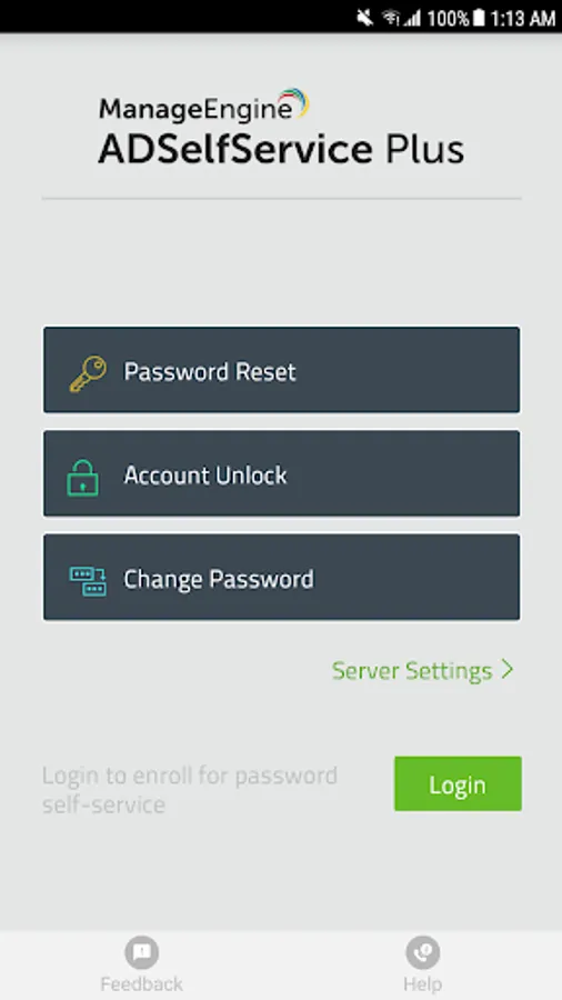 You must have ManageEngine ADSelfService Plus 5.0 or later installed in your corporate network to use this app.