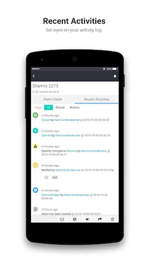 Create your AlarmsOne account, login to AlarmsOne from the mobile app and manage all your IT alarms on-the-go. Alarm management is simple and effective now.