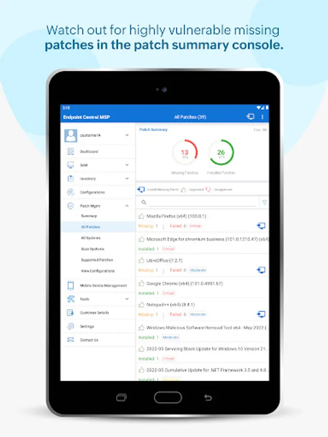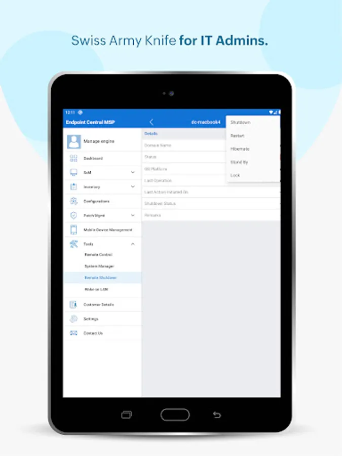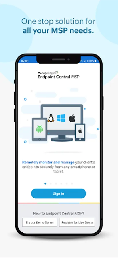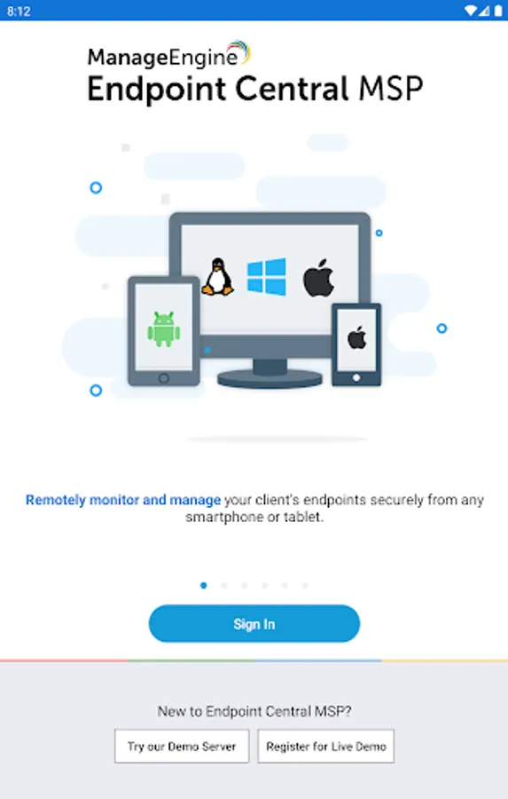 ManageEngine Endpoint Central MSP android app formerly known as Desktop Central MSP is exclusively packaged for service providers to seamlessly connect and interact with customer servers, laptops and desktops across the globe. It enables IT service providers to manage customer systems on the go and frees them from being stuck in office to do these routines, thereby making them more productive.