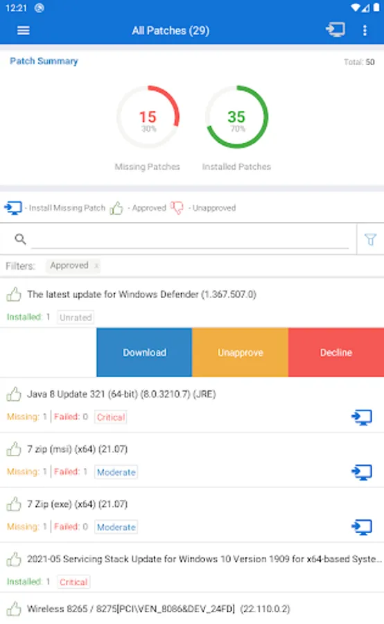 • Approve/Decline patches