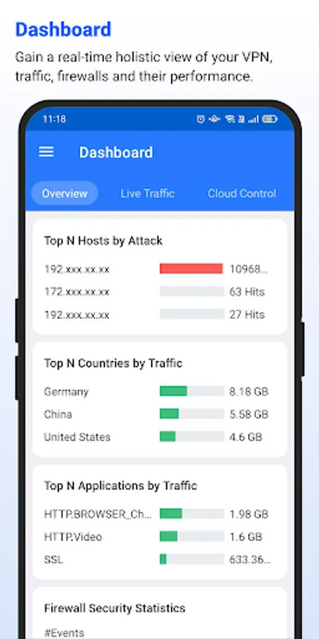 Gain an overview of your firewall's traffic, bandwidth, and rule usage.