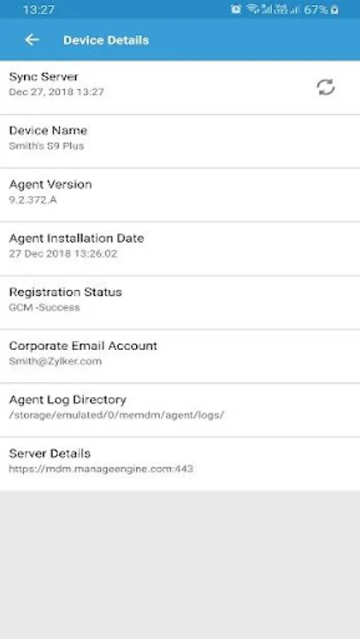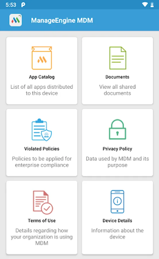 Note: This free MDM app from is used together with the ManageEngine MDM software to manage only Android, Samsung KNOX and SAFE devices. Your IT administrator can deploy the MDM software on a host system or access it on the cloud. The devices owners will get credentials and instructions from the IT admins on the usage of the MDM app. Thereafter, the MDM App needs to be installed on your device. It will give you access to corporate resources such as E-mail, apps, and other necessities impelled by your organization. It helps to have the devices monitored to avoid theft or violation.