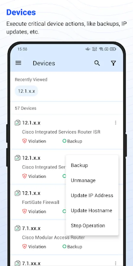 The Network Configuration Manager mobile app extends network management capabilities to the palm of your hands. This mobile application enables you to perform crucial operations remotely, empowering you to respond promptly and take necessary actions. This ensures efficient network management even when you're away from the console.