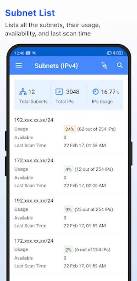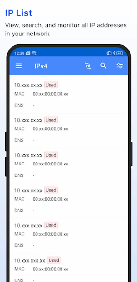 List all the IP addresses in your network with detailed insights on IP availability, associated MAC addresses, user, location and more.