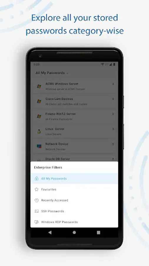 PAM360's mobile app brings the product's powerful features to your fingertips, letting you manage and control your enterprise's privileged accounts and passwords even while on the go. With this handy app, you can: