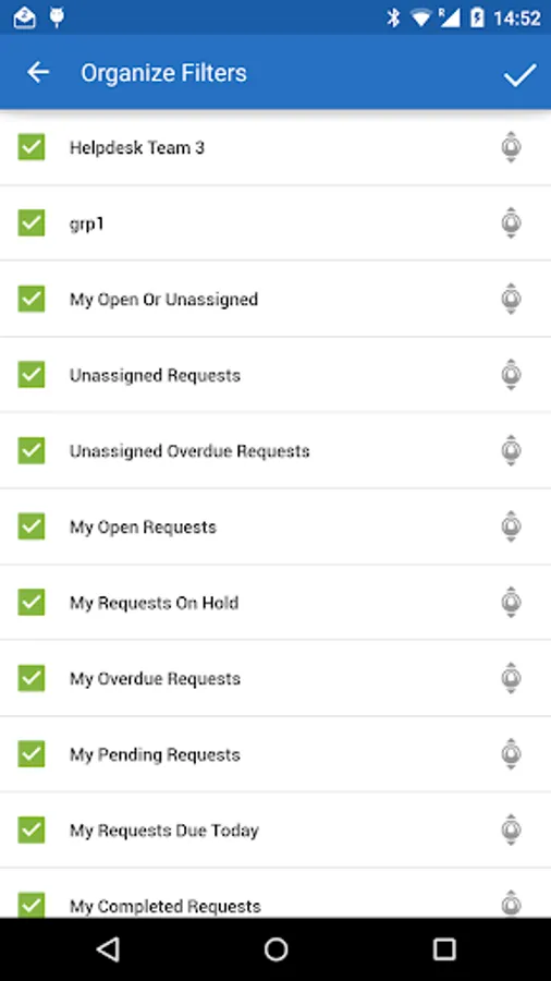 * Filter requests based on criteria such as unassigned, pending, open etc.