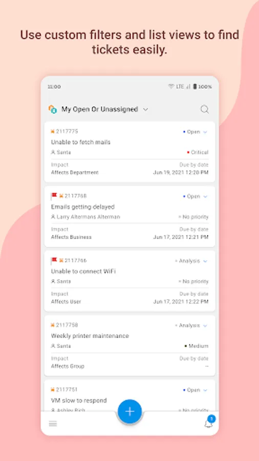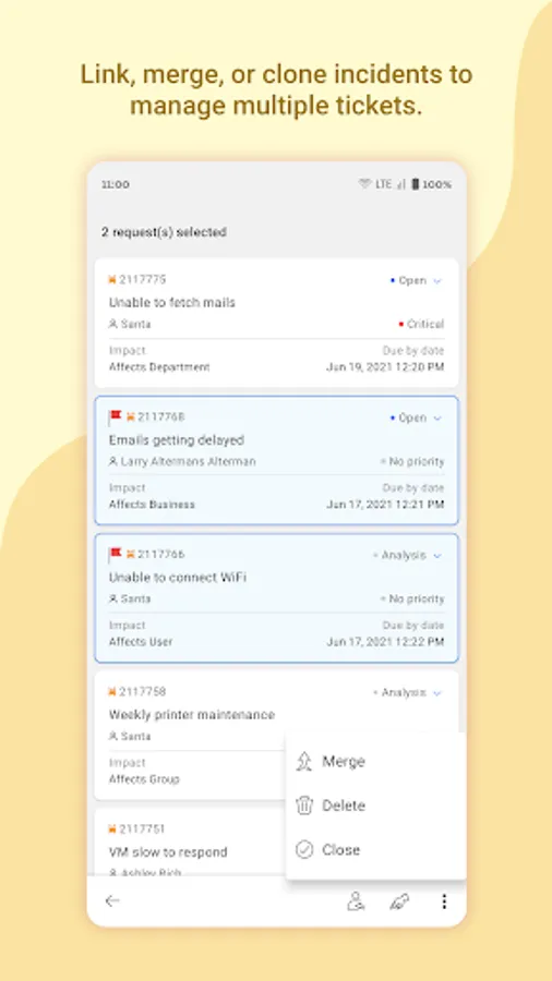 ● Create, pick up, assign, merge, resolve, and close IT tickets and notify users.