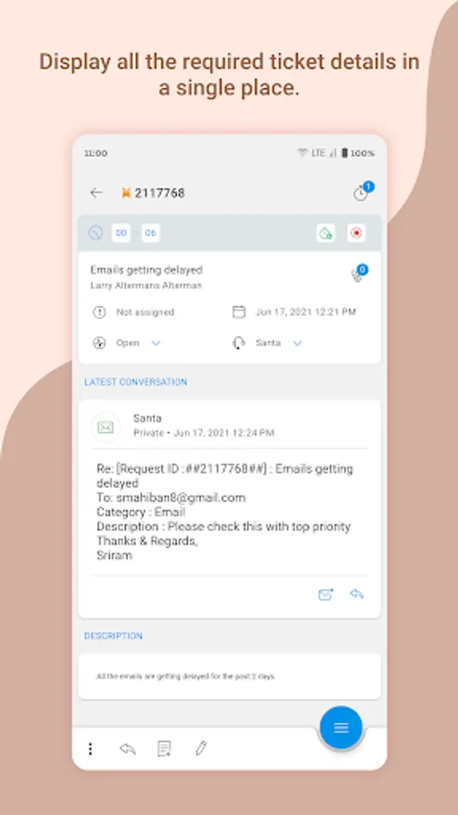 ● Auto-populate the ticket description when users reply to technicians from the app.