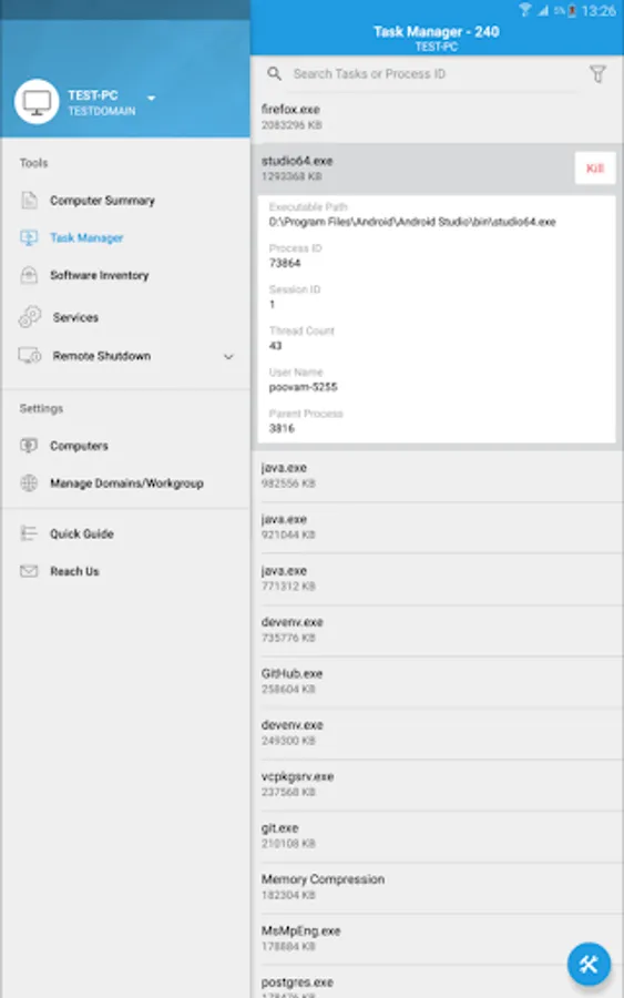 • See which tasks are running on any given computer in your network and stop tasks instantly.
