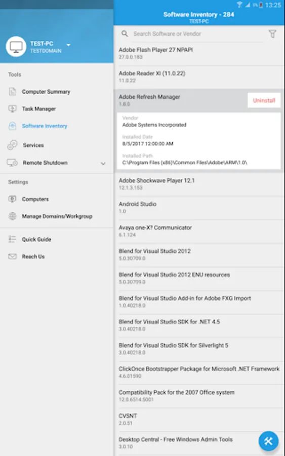 • Manage software in your network with in-depth details like software name, version, manufacturer and installation date. You can also uninstall software remotely.