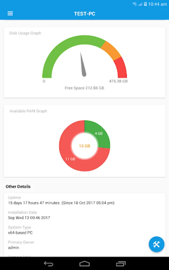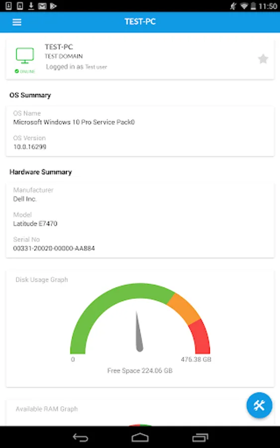 • Pull up information about managed computers like system name, date, serial number, username, manufacturer, operating system, RAM, model, and more, from your mobile device.