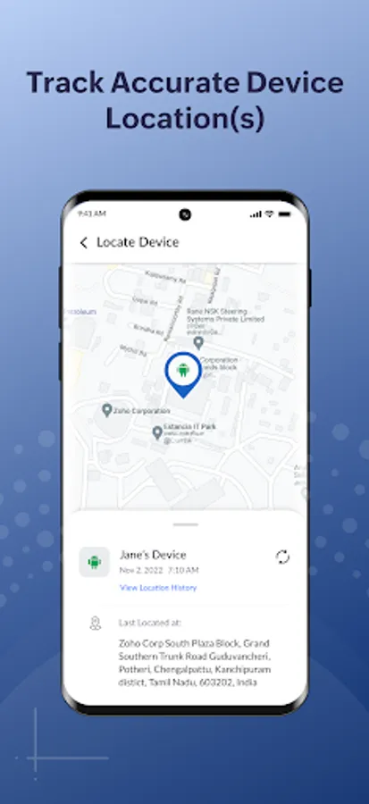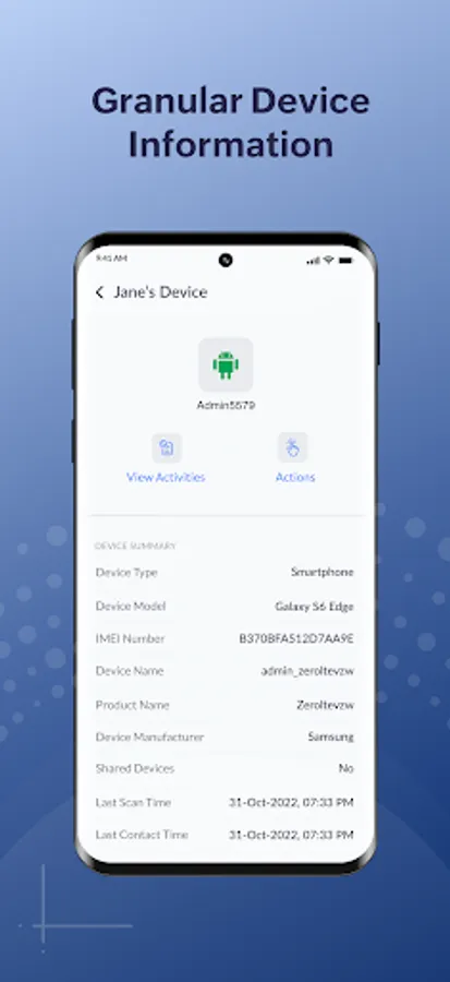 With the Mobile Device Manager Plus app, you can stay informed about all your managed devices, and view summaries of devices' network information, OS, memory usage, battery level, apps, and much more.