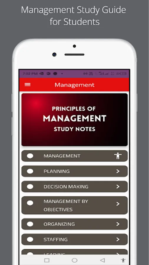 This Management App is educational and contains information on crucial course topics. You can use it as a digital book and reference tool. The Management App helps students and professionals quickly review the course material before exams by providing quick references to the key Principles of Management topics. It includes the following.