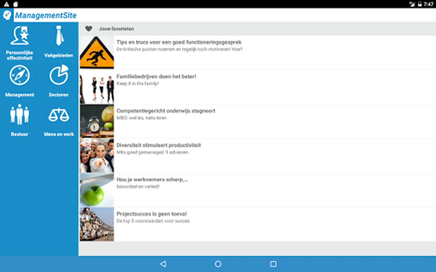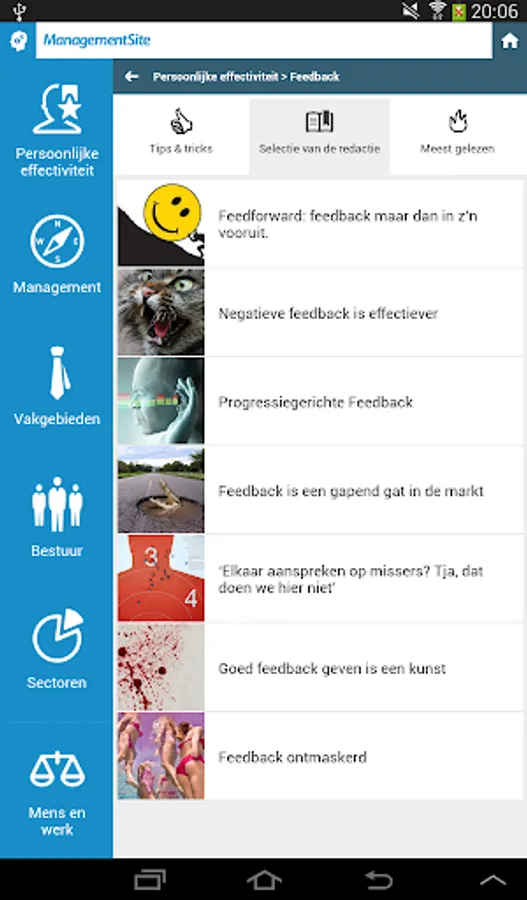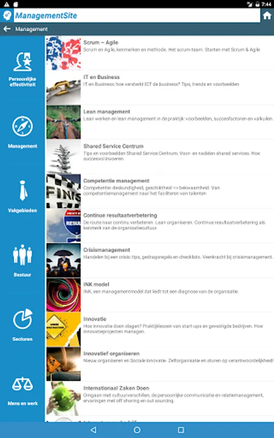 All management knowledge and ready at your fingertips. A selection of the best and most discussed articles from Management Site. And for every situation a few smart tips and tricks.