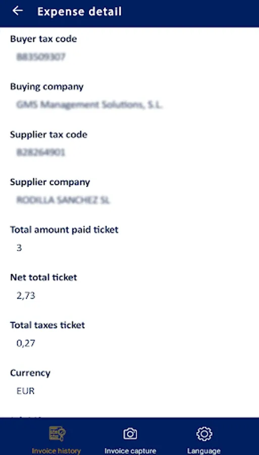 The app has a historical data repository allowing users to view both the receipts already sent to the system and those pending submission, and includes features such as: editing, correcting and expanding the information captured by the camera, specifying the expense type, analytical categorizing, and adjusting and modifying the amounts.