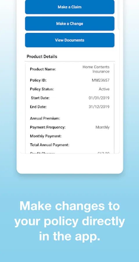 - View your important Insurance information – quickly access your policy details, cover information, excesses and renewal date - Update your personal details, or tell us about changes to your circumstances or insurance needs, in a few easy steps - Access your insurance documents in one place, whenever you need them