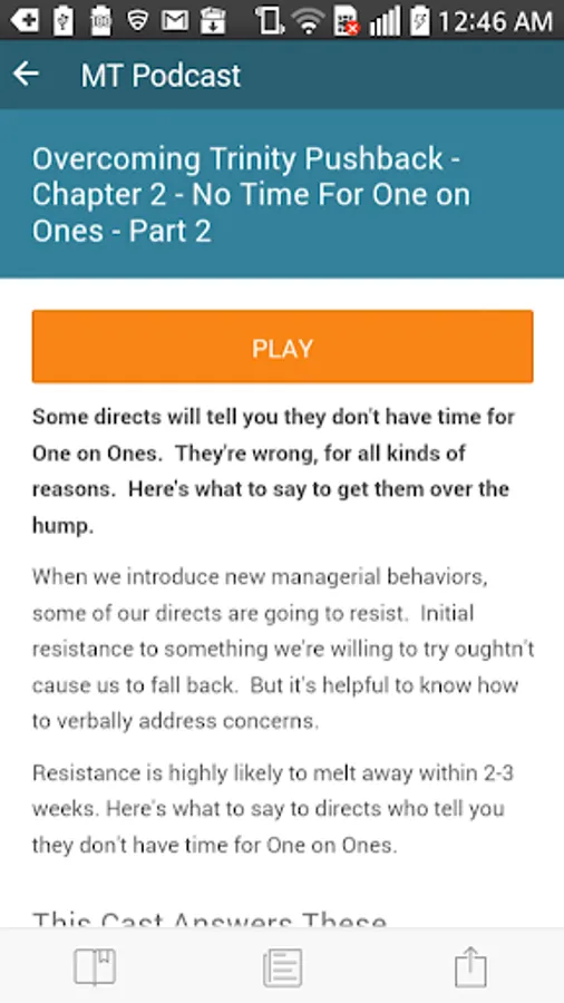 The Manager Tools app is designed to streamline the content you want to hear with just a few taps of your thumb. You won’t need any podcatchers or unnecessary add-ons to access your precious audio here. Simply tap the Play button to instantly stream the ‘casts you want to hear (requires a mobile internet connection).