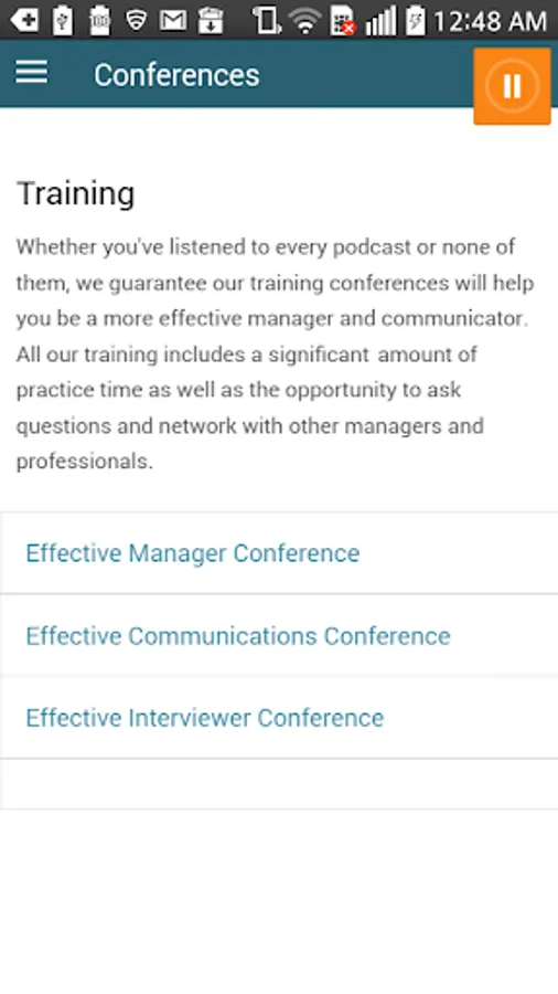 Our Training portal provides you with a live look at all of Manager Tools’ upcoming Effective Manager, Effective Communications and Effective Interviewer Conferences. Dates are scheduled well in advance, and take place throughout the U.S. and beyond. You can also interact with some of the world’s greatest managers and business professionals at any time by tapping on the Forums menu option!