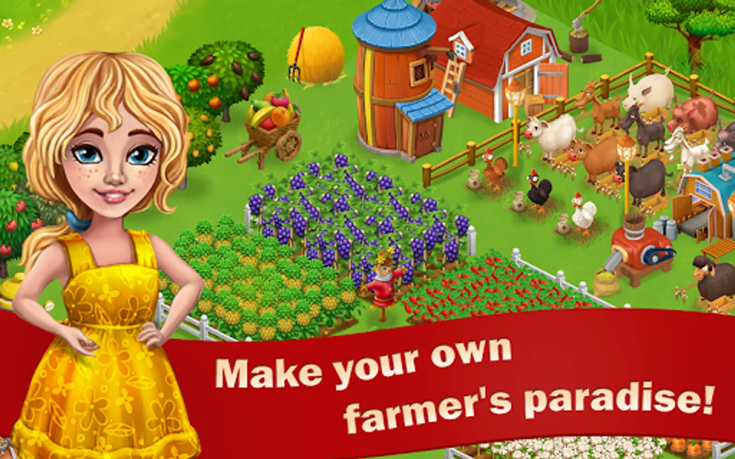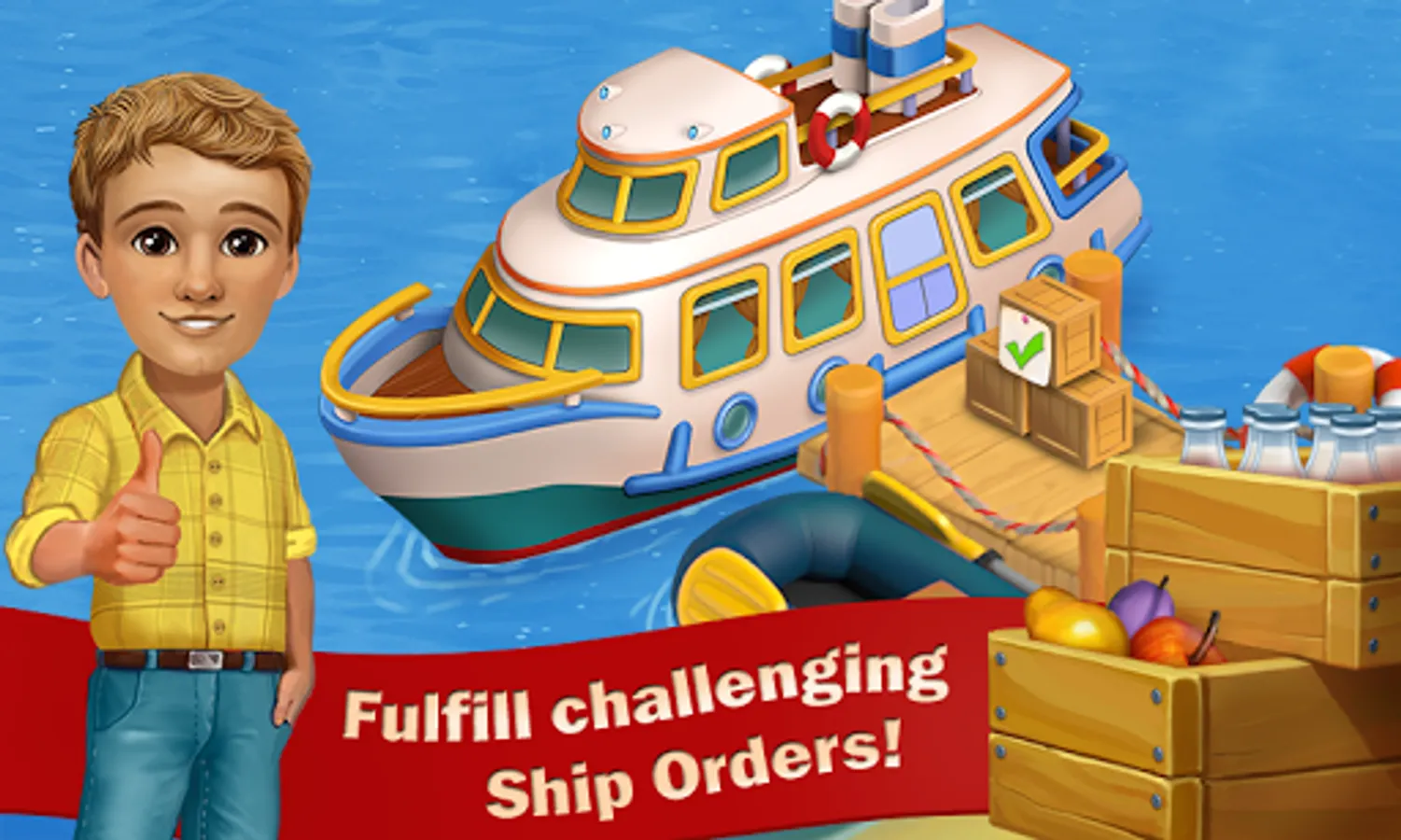 Create your nice lucky village story with a great family atmosphere! Build your own paradise household. Enjoy your excellent sunny and happy hay days on your township. Explore the mine to get resources to improve production! Сomplete exciting ship orders in a paradise bay, trade items and earn coins to make your farm bigger and more beautiful!