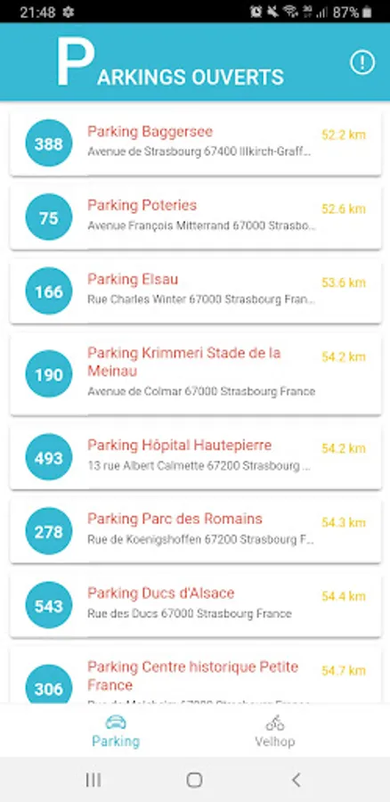 The car parks are offered in real time and in order of the car park closest to your current position.
