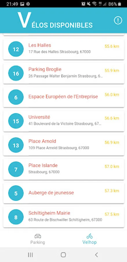 Real-time occupancy of available and open car parks in the city of Strasbourg.