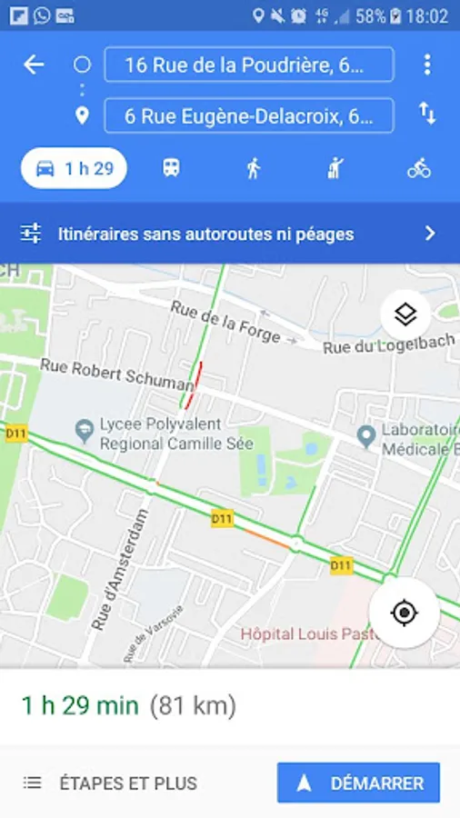 Suggests the route to get to the selected car park with Google Map.
