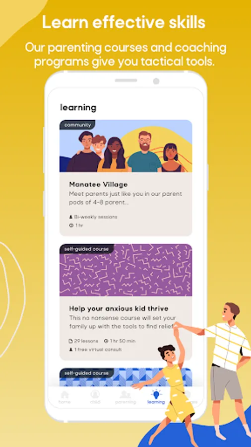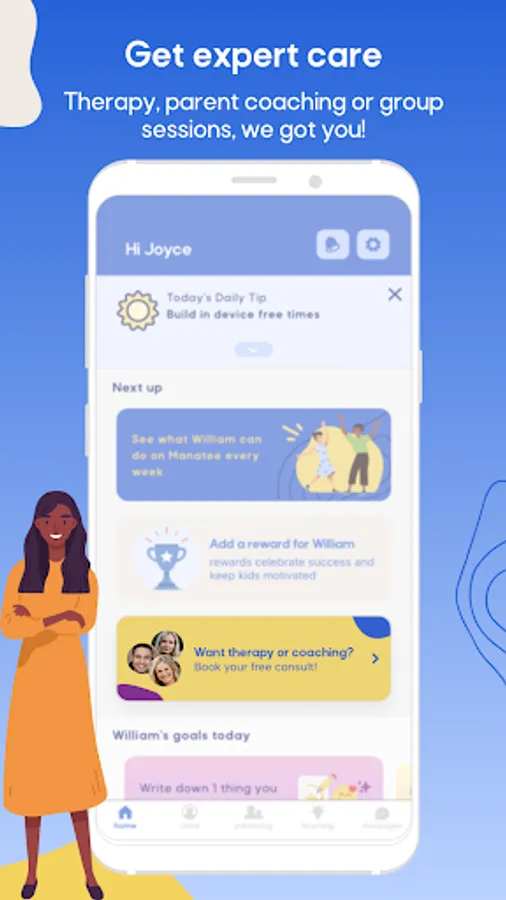 Your family can use Manatee independently. It’s pretty simple: download the app and add your kid(s) and any co-parents or caregivers to your account. Then set up your goals, rewards, and maybe pick a self-guided course, and you’re good to go!