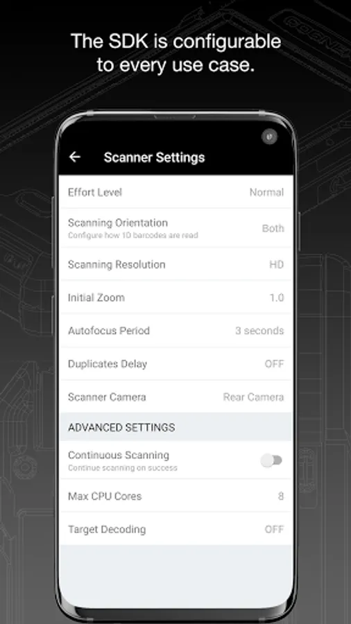 Simplicity - The SDK’s high-level API make adding barcode scanning to your application simple. But don’t worry: the SDK is quite flexible and will allow the programmer to customize the user experience and tune scanning features.