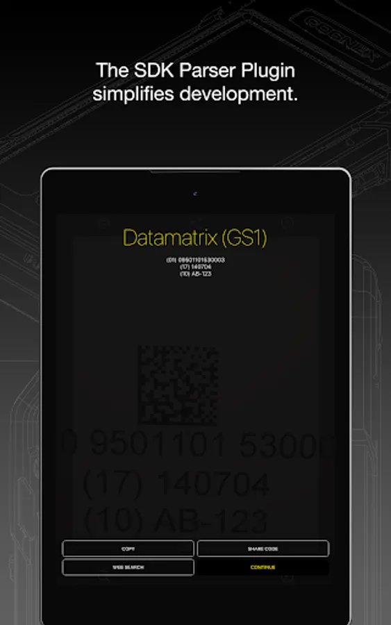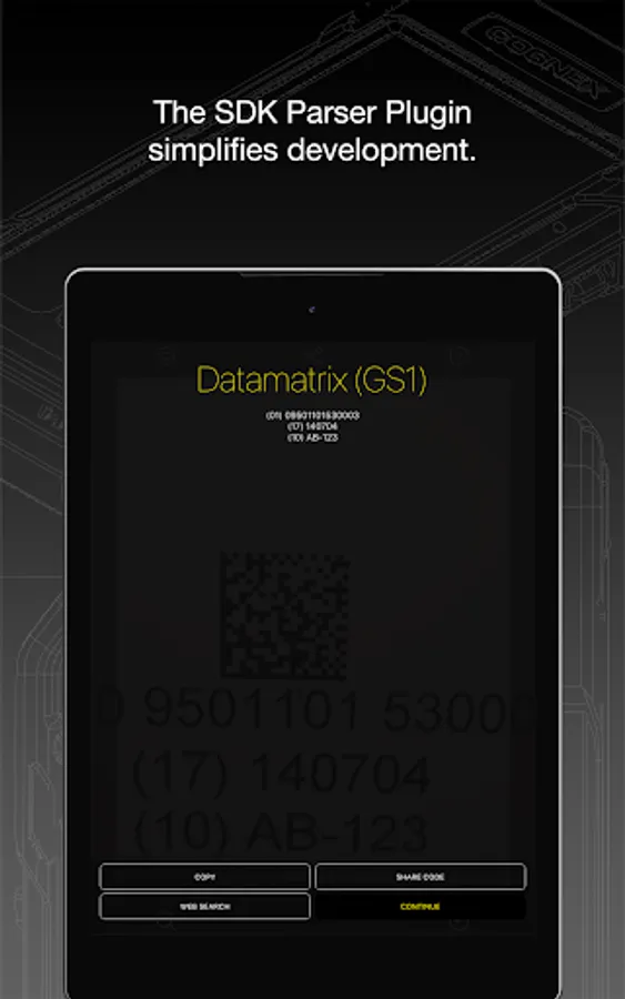 You can add powerful data capture parser plugins to the Cognex Mobile Barcode SDK at no additional cost when you purchase an SDK license. Plugins include industry standard parsers such as AAMVA (US and Canadian Driver’s Licenses), GS1, IUID, Structured Carrier Messages (MaxiCode), and more!