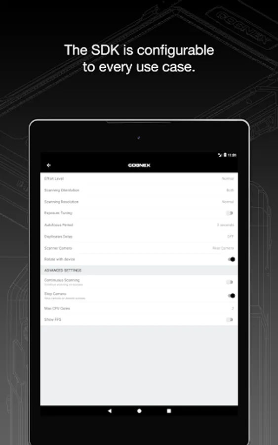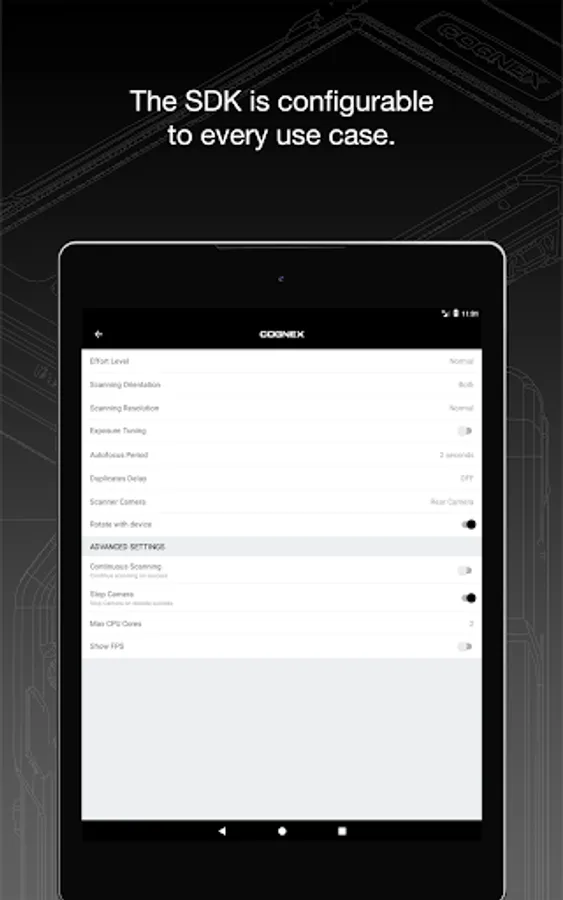 Speed - The Cognex Mobile Barcode SDK is tuned to provide fast and reliable barcode reading for smartphones and tablets. For damaged codes, challenging lighting conditions, or harsh environments, the SDK leverages advanced algorithms to be able to scan the toughest barcodes..