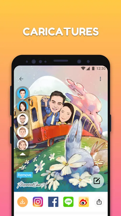 MomentCam allows you to create funny Cartoons and Emoticons from your photos.