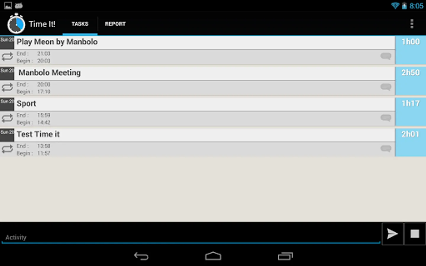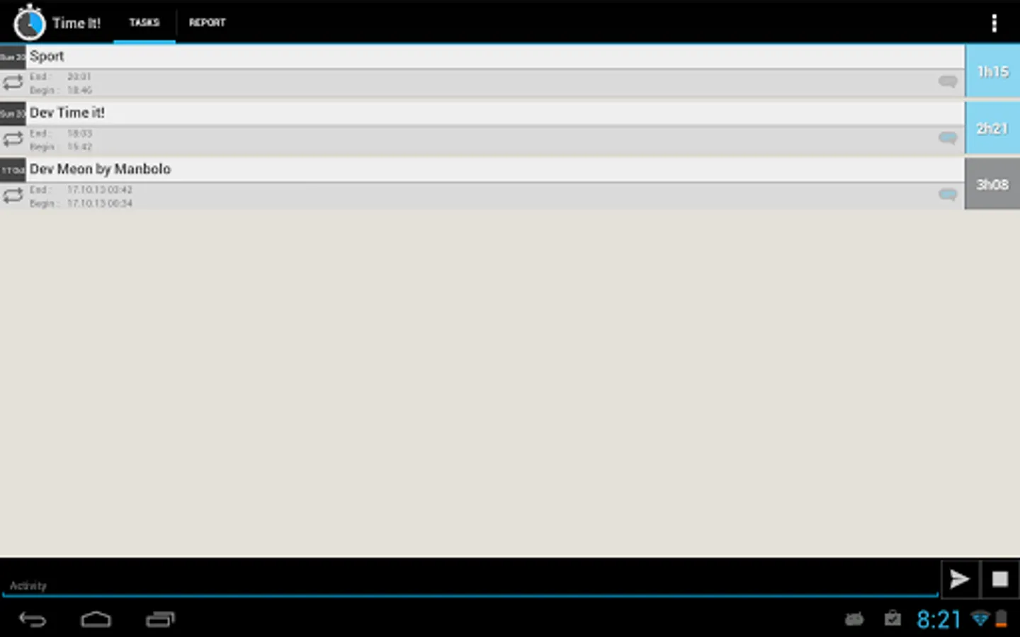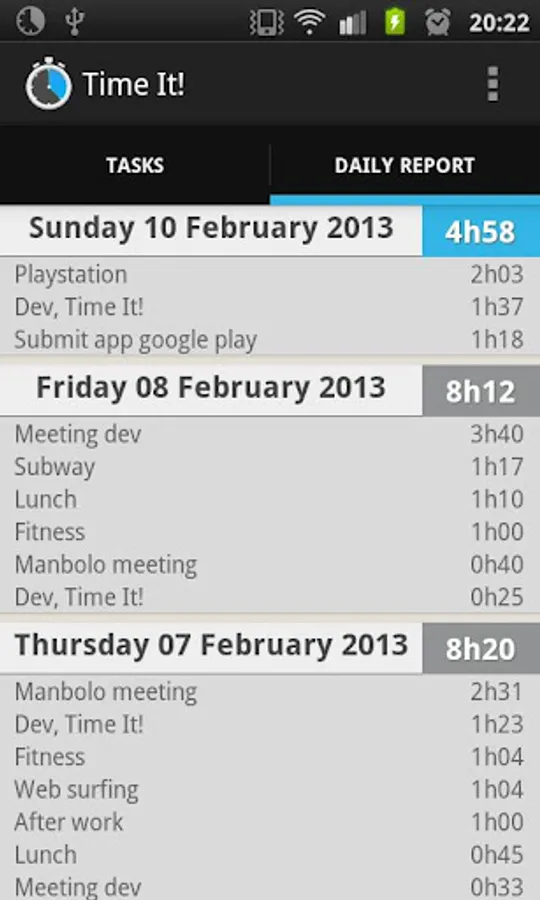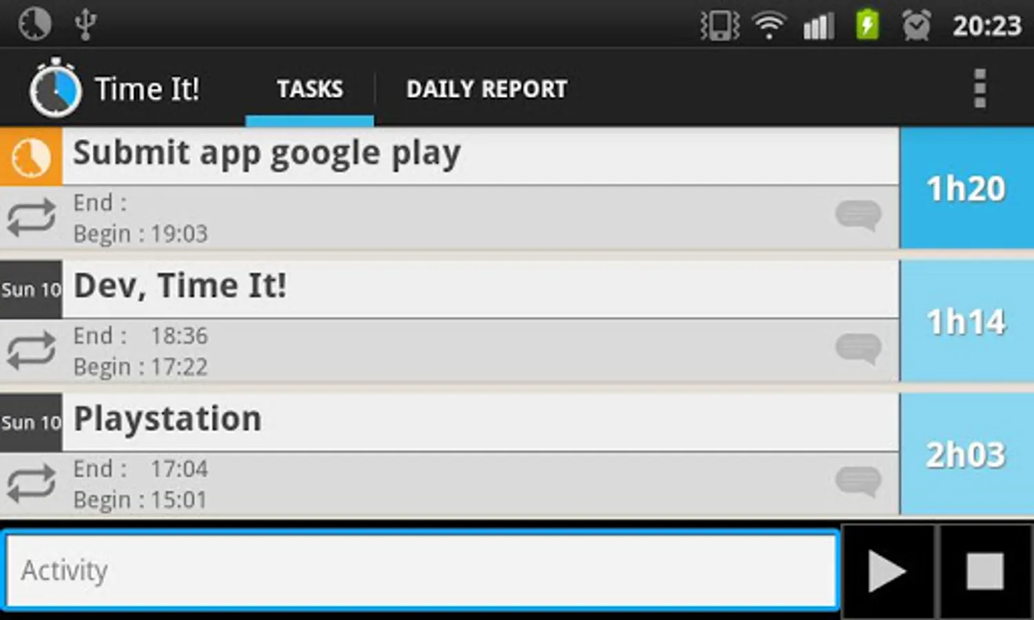 Time It! allows you to easily track time spent for any kind of activity: work, sport, travel, entertainment...