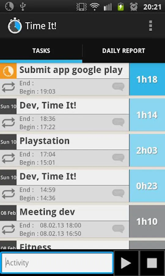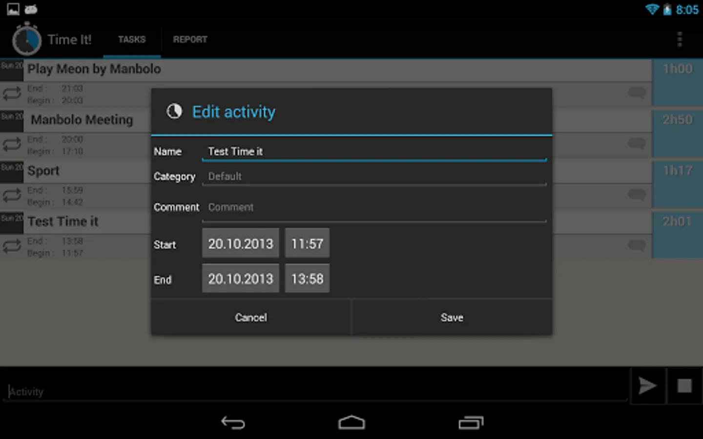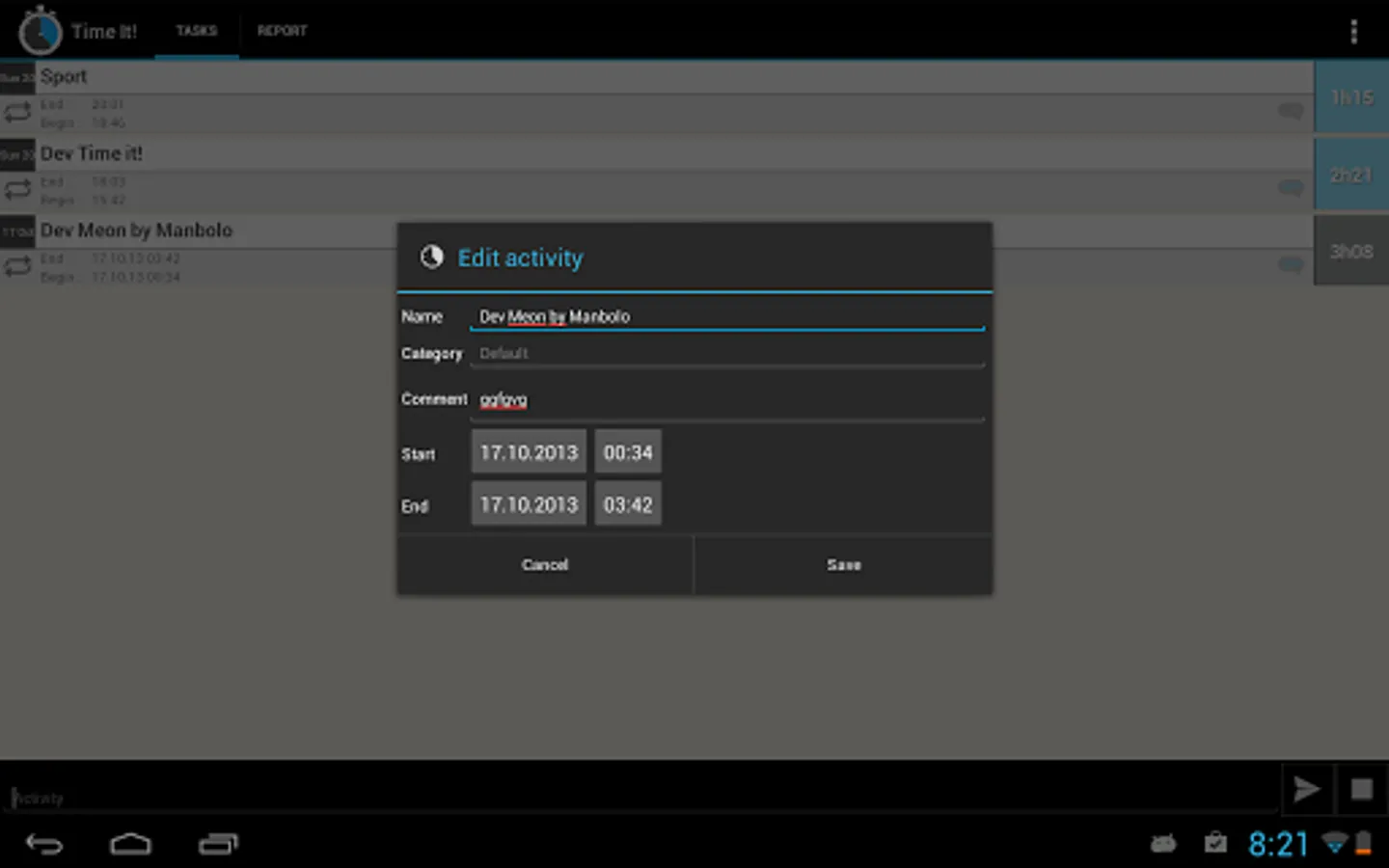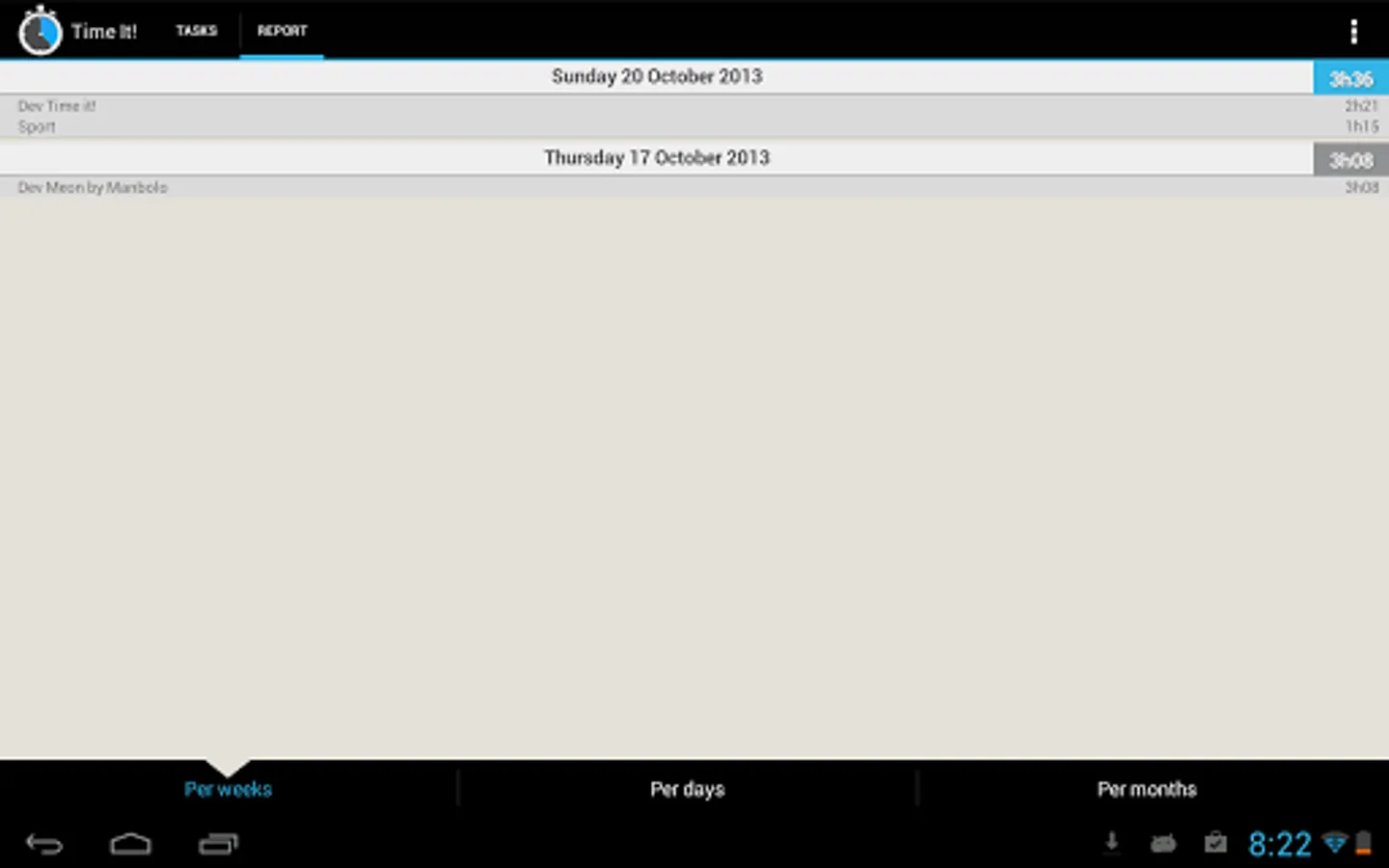Time It! allows you to easily track time spent for any kind of activity: work, sport, travel, entertainment...